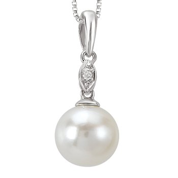 SILVER FW CULTURED PEARL PEND.WHITE 8.5-9MM RD PEARL W/ D.01 - Fine Jewelry