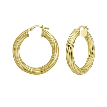 These 14 Karat Full Twist Medium Hoops earrings feature a stunning finish and contemporary style, perfect for any occasion.