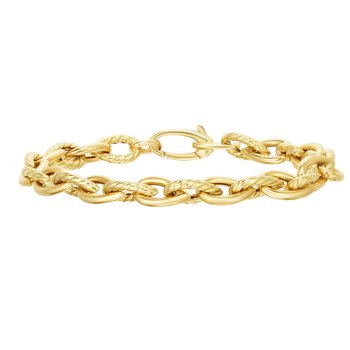 Elegant 14K Gold 7.5in Yellow Gold Diamond Cut/ Textured Style Italian Cable Bracelet with Lobster Clasp 2 Bracelet